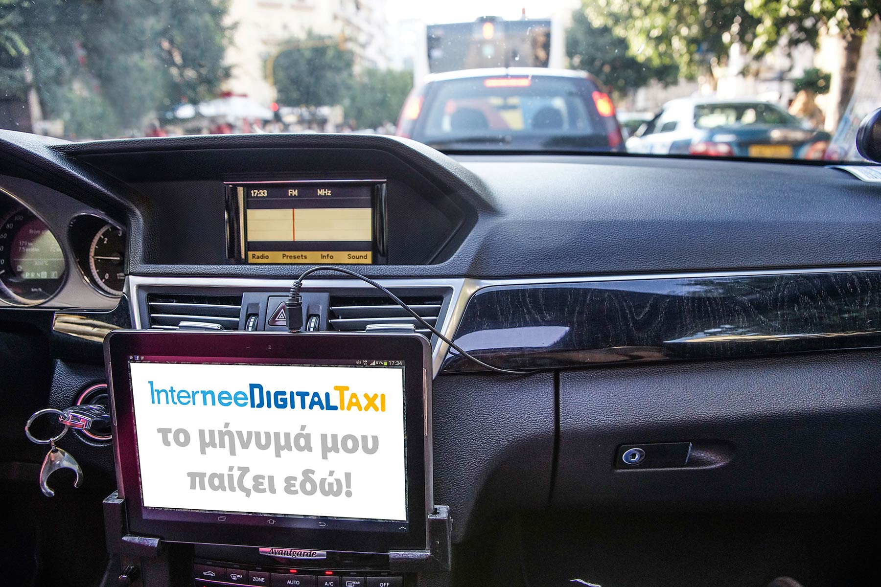 Με την υπηρεσία Digital TAXI τα ταξί εξοπλίζονται και φέρνουν την επανάσταση στην ψηφιακή επικοινωνία προβάλλοντας διαφημίσεις μπροστά σε κάθε επιβαίνοντα τη στιγμή που εκείνος ξεκινά τη μετακίνησή του προς τον τελικό του προορισμό. Πρόκειται για μία νέα, καινοτομική υπηρεσία προβολής και διαφήμισης που προσφέρει απόλυτο έλεγχο των θεάσεων αφού το μήνυμα προβάλλεται μόνο κατά την είσοδο πελάτη στο όχημα και κατά τη μετακίνησή του. Το σύστημα της Interneed κράτα σε ξεχωριστή βάση πεδίο με την καταγραφή των αναμεταδόσεων. Οι πληροφορίες αυτές αποτελούν στο τέλος κάθε διαφημιστικού προγράμματος αναφορά (Report) η οποία παραδίδεται σε κάθε διαφημιζόμενο. Η υπηρεσία Digital Taxi φέρνει τον πελάτη σας σε απόλυτη επαφή με το μήνυμά σας αφού τον συνοδεύει κατά τη μετακίνηση του μέσα σε ένα ήσυχο περιβάλλον που σας επιτρέπει να τραβήξτε την προσοχή του.